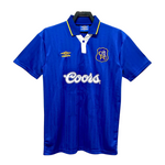 The Chelsea Home Shirt (1995-1997) is a classic design that reflects the vibrant era of mid-90s football. Designed by Umbro, this iconic jersey features Chelsea’s traditional royal blue with white and yellow accents, creating a striking and memorable look. The Coors sponsor logo, prominently displayed on the chest, completes the nostalgic feel of this kit.