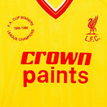 The Liverpool Third Shirt (1985-1986) is a timeless classic that captures the spirit of one of the club’s most successful seasons. Crafted by Umbro, this iconic jersey features a striking yellow base with red pinstripes, reflecting the bold and innovative style of 1980s football kits. The Crown Paints sponsor logo proudly adorns the chest, completing a design that is both nostalgic and unforgettable.
