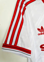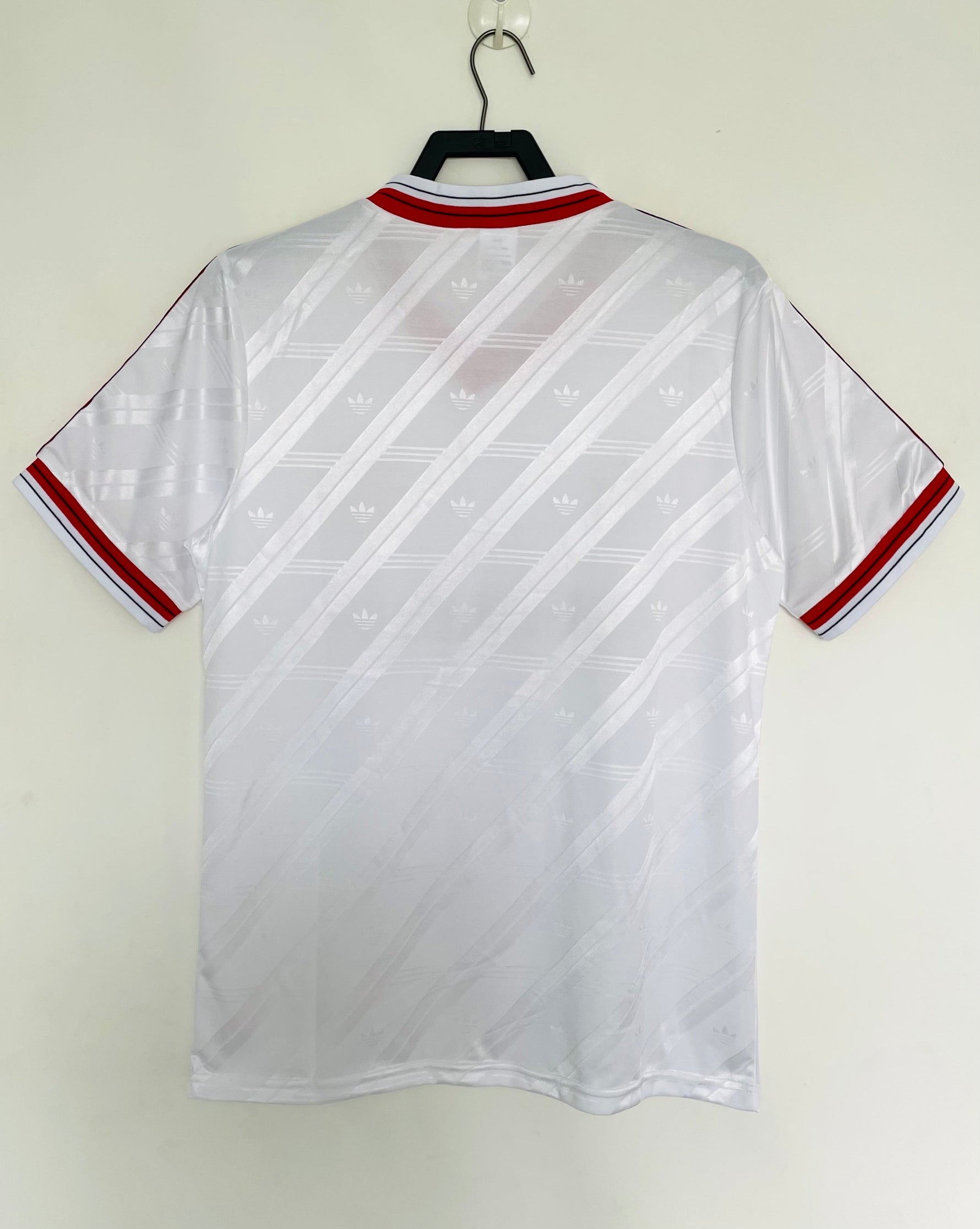 The Manchester United Away Shirt (1986-1988) is a vintage classic that symbolizes the club’s resilience during a transformative period. Designed by Adidas, this iconic jersey features a striking white base with bold red and black trim on the collar, shoulders, and cuffs. The debut of the Sharp sponsor logo, alongside the Adidas trefoil, adds a touch of nostalgia to this timeless kit.