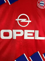 The 1993-1995 Bayern Munich home shirt is a standout piece of football fashion from the early 90s, reflecting the club’s rich heritage and dominance. Designed by Adidas, this jersey features the iconic red base with bold blue vertical stripes, accented by the classic three-stripes detailing on the sleeves. The Opel sponsor, prominently displayed across the chest, and the embroidered Bayern crest add a timeless touch to this legendary kit.