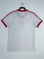 The Poland Home Shirt (1982) is a timeless piece of football history that captures the pride and resilience of one of Europe’s storied national teams. Designed by Adidas, this classic jersey features a clean white base with red accents on the collar and cuffs, reflecting Poland’s national colors. The Polish Football Association crest, proudly displayed on the chest, adds a touch of elegance to this iconic kit.