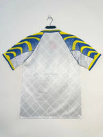 This Parma AC 1995-97 Away Shirt is one of the most unique and stylish kits from the mid-90s, reflecting Puma’s bold designs and the club’s distinctive identity. The blue and yellow sleeve detailing adds a vibrant contrast, making this jersey a standout among Parma’s classic kits.