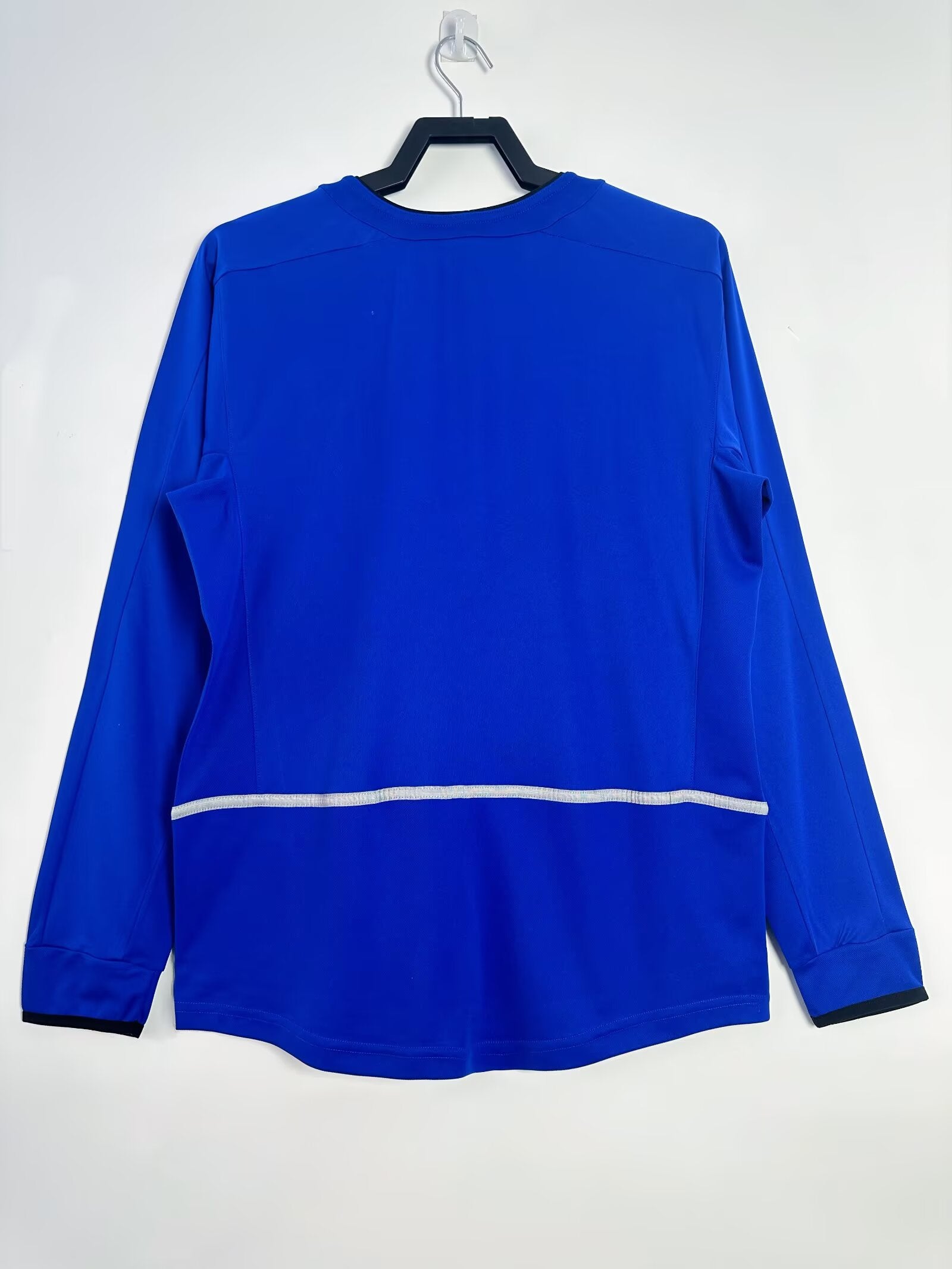 The 2002-2003 Manchester United away shirt is an iconic jersey from a season where the Red Devils reclaimed their dominance in English football. Designed by Nike, this long-sleeve edition features a striking royal blue color, accented with silver details and the classic Vodafone sponsor. Worn during an unforgettable title-winning campaign, this shirt holds a special place in United’s history.