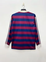 • Bold Color Combination: Featuring striking claret and navy blue horizontal stripes, this jersey stood out as one of the most unique and daring away kits of the era.