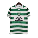 The Celtic FC Home Shirt (1997-1999) is a classic representation of the Bhoys’ heritage and passion. Featuring the iconic green and white hoops, crafted by Umbro, this jersey is synonymous with Celtic’s rich history and loyal fanbase. The bold CR Smith sponsor logo completes the design, making it instantly recognizable on and off the pitch.