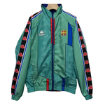 On one side, the jacket displays the bold red and blue stripes of Barcelona’s famous home kit. On the flip side, you get a vibrant turquoise and green design that showcases the club’s away kit colors from that historic season. With contrasting Kappa logos on the sleeves and the Barcelona crest on the chest, this reversible jacket offers two distinct looks in one, perfect for any fan who loves versatility and flair.