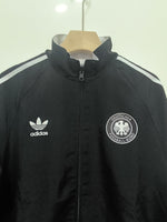 The jacket boasts two incredible designs in one. One side features the bold and classic black with white Adidas stripes down the arms, paired with the famous Germany crest. The reverse side features the vivid red, yellow, and black chevron design, representing the colors of the German flag in an eye-catching fashion. Whether you choose the sleek black side or the colorful display, this jacket lets you switch up your style based on your mood.