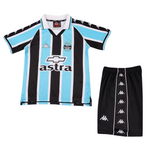 The Grêmio Kids Home Kit from the 2000 season, designed by Kappa, is a tribute to the club’s rich history in Brazilian football. Featuring the iconic blue, black, and white stripes, this kit is a perfect representation of Grêmio’s tradition and success.
