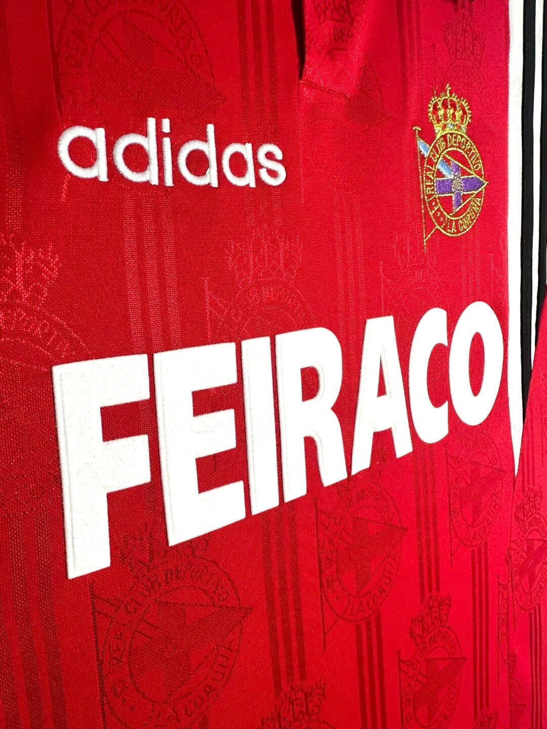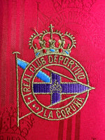 The 1997-1998 RC Deportivo La Coruña away shirt is a striking piece of football nostalgia. Designed by Adidas, this jersey features a bold red design with white accents, showcasing a clean yet dynamic look. The embroidered club crest and the distinctive Feiraco sponsor complete the timeless aesthetic, making it a standout shirt for fans and collectors alike.