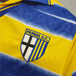The Parma AC Home Shirt (1998-1999) is a timeless classic that symbolizes the golden era of Italian football and Parma’s rise as a European powerhouse. Crafted by Lotto, this jersey features the iconic yellow and blue horizontal stripes, accented by the Parmalat sponsor logo, a hallmark of the club’s success during this period.